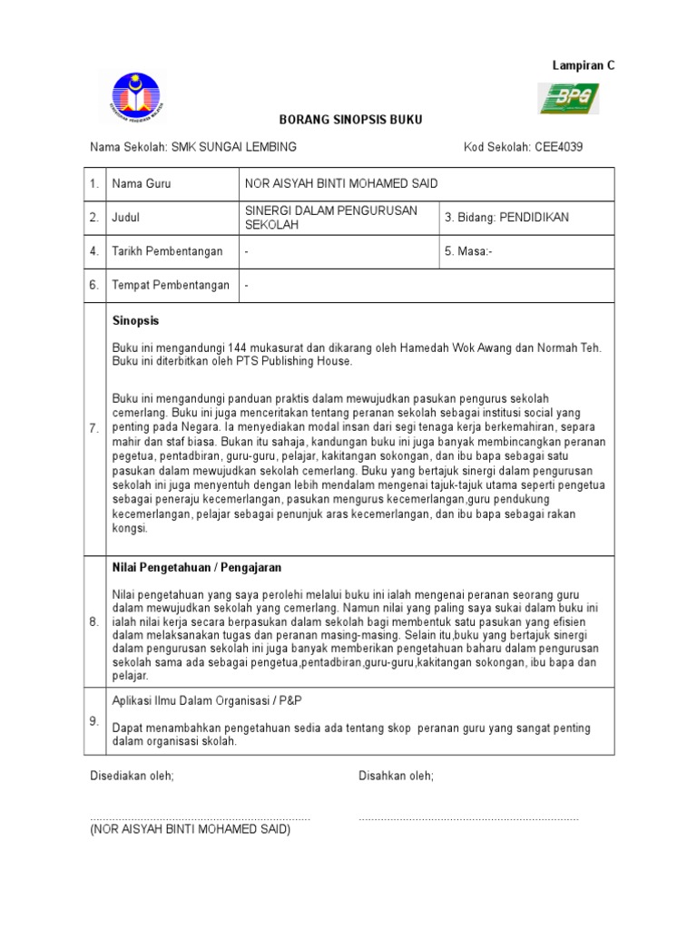 Nama guru hamka bin ramlan 2. Borang penulisan sinopsis bukuanamamohd nizamudin bin mohd. Judul makna baharu perubahan pendidikan 3.